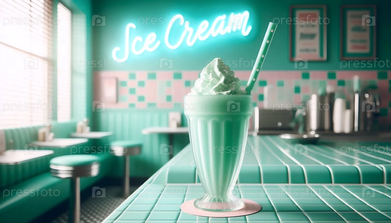 Винтажный молочный коктейль, подаваемый в классическом столовом стакане 1950-х годов Ai generated image