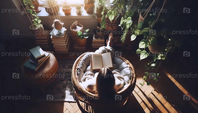 Угол чтения с зеленым, Ai generated image