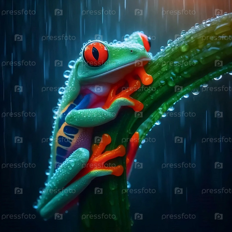 Красноглазая деревянная лягушка ночью, Ai generated image