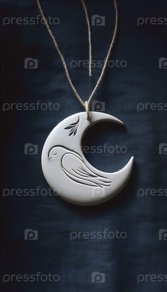 Полумесяц с силуэтом спящего голубя, Ai generated image