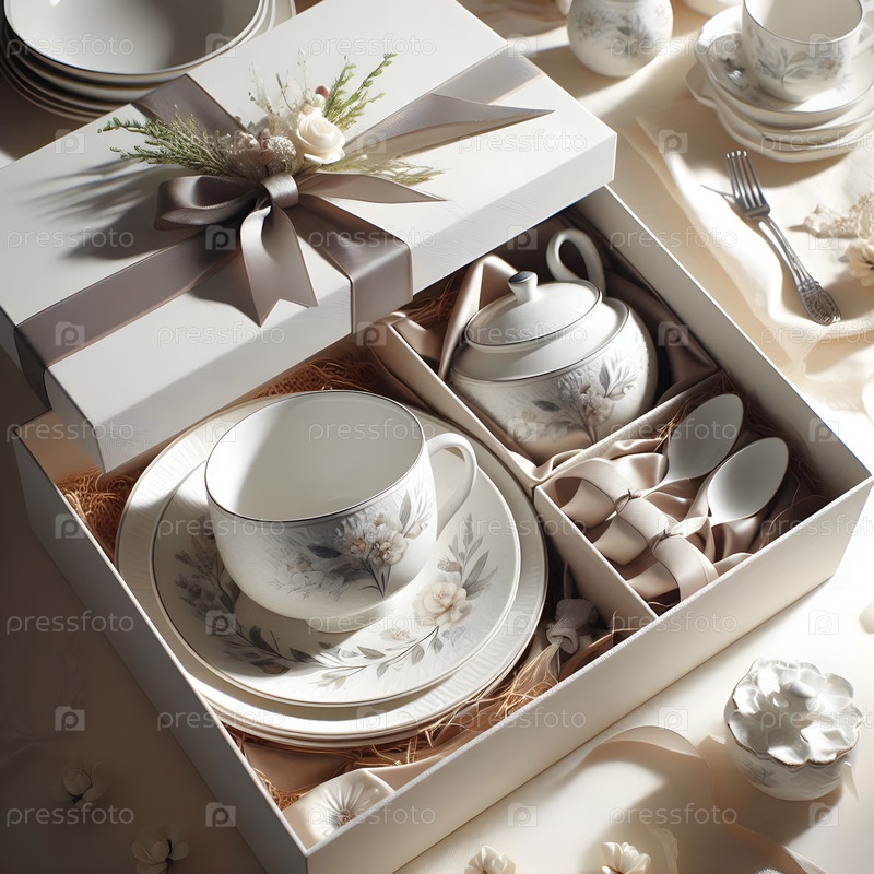 Порцелановый набор посуды для ужина, изображение Ai-генерированное