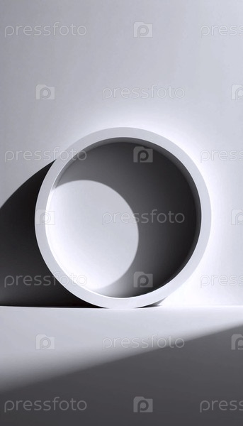 Одно, идеально круглое окно люка в изогнутой белой стене, отбрасывающее резкую круглую тень, Ай создал изображение
