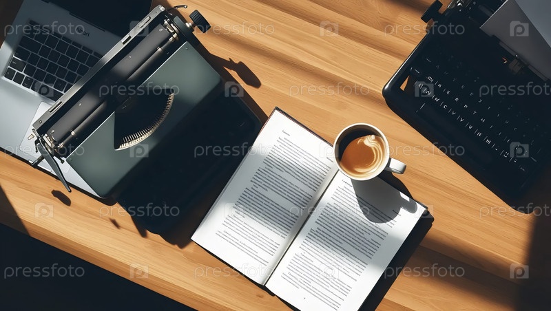 Искусство, ноутбук с чашкой кофе, Ai generated image Lat