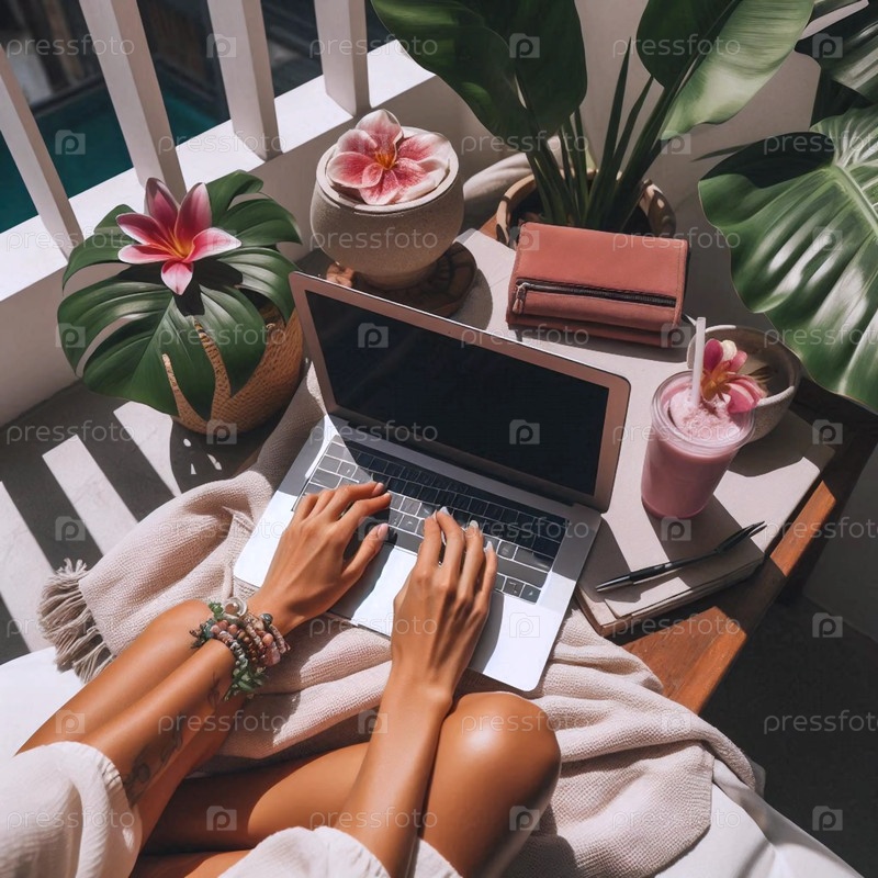 Руки, печатающие на клавиатуре в творческой атмосфере рабочего пространства, Ai generated image