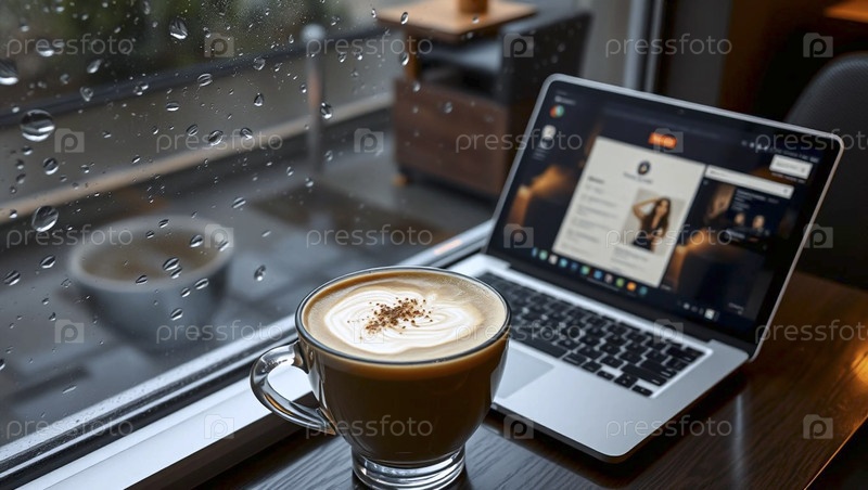 Искусство, ноутбук с чашкой кофе, Ai generated image Lat