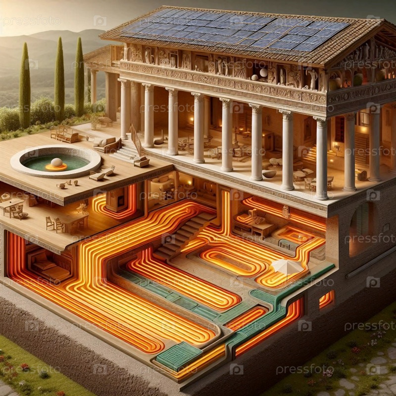 Знаменитая римская система отопления Гипокауста, AI generated image