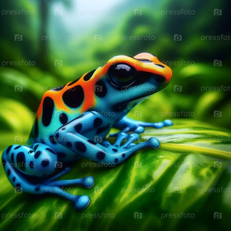 A vibrant poison dart frog, Ai generated image Вибрирующая ядовитая стрелка лягушки, созданная изображением