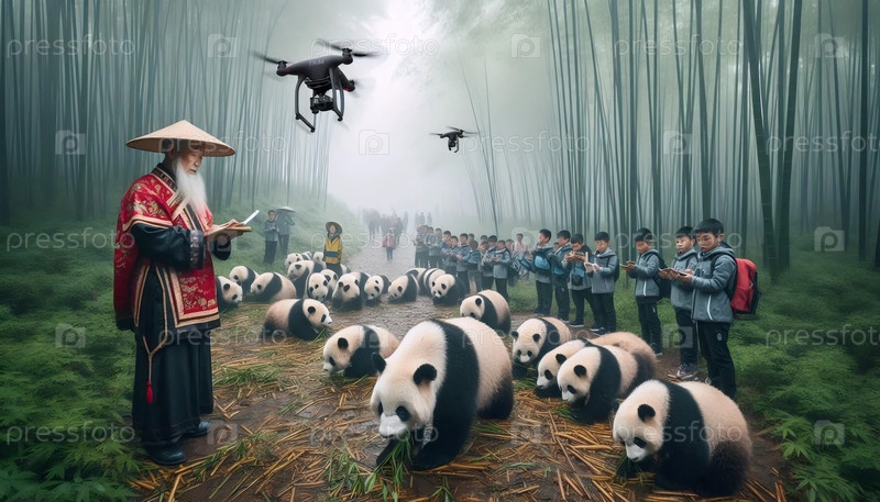 Знаменитые китайские хранители панды, ИИ сгенерированное изображение