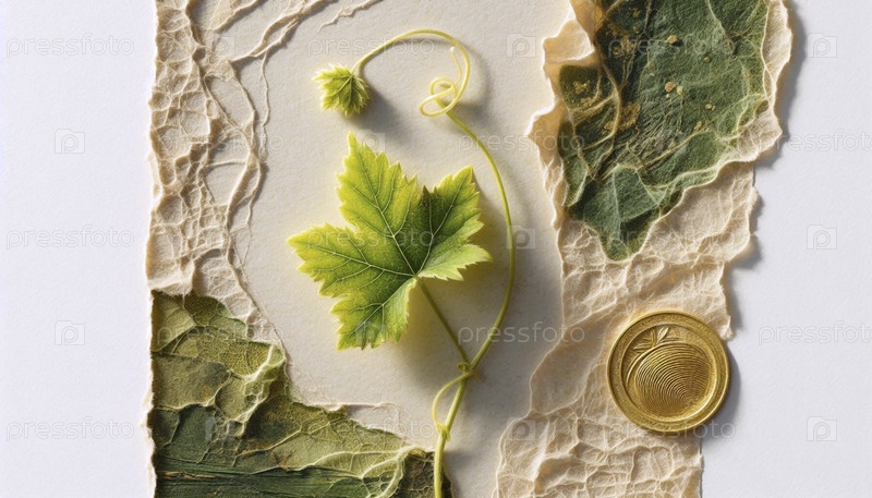 Тендриль виноградной лозы на ручной бумаге, Ai generated image