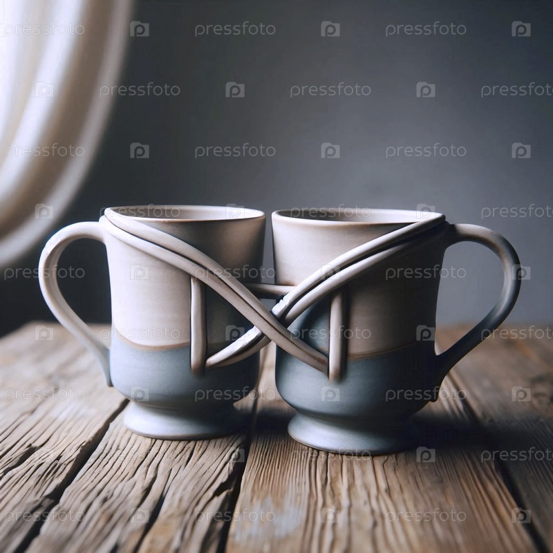 Набор глиняных свадебных чашек с взаимосвязанными перекрестными ручками, Ai generated image