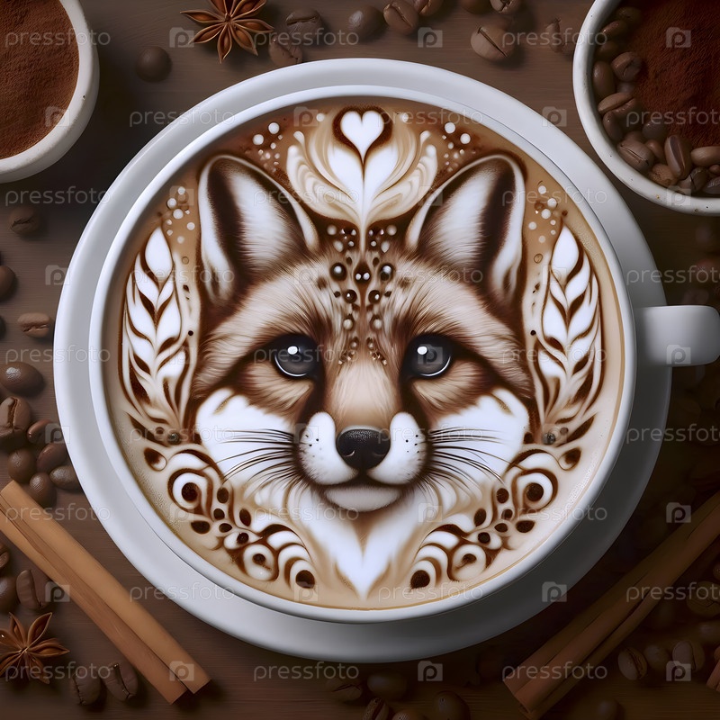 Шедевр кофейного искусства, показывающий подробный портрет животных в латте-пене, Ai created image
