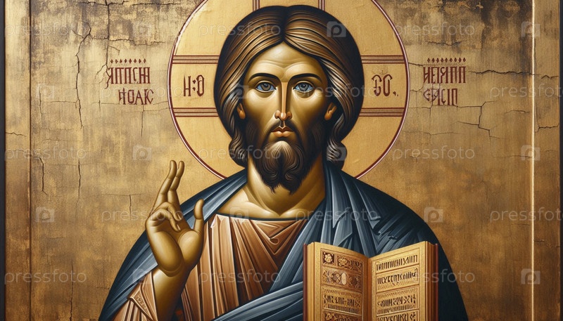 Цифровое воспроизведение традиционной восточно-православной иконы Христа Пантократора, Ai generated image