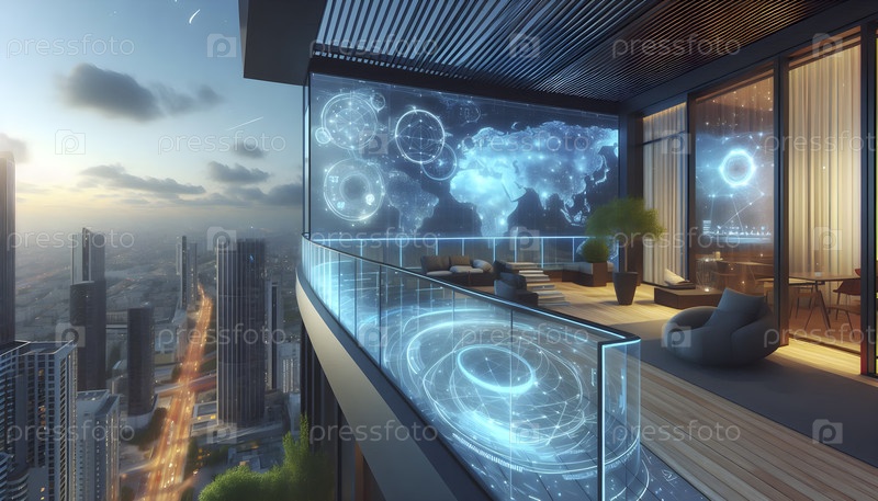 Терраса на крыше с умными стеклянными перилами, Ai created image