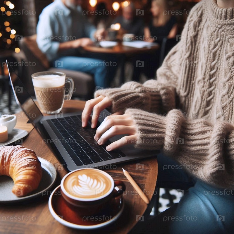 Руки, печатающие на клавиатуре в творческой атмосфере рабочего пространства, Ai generated image