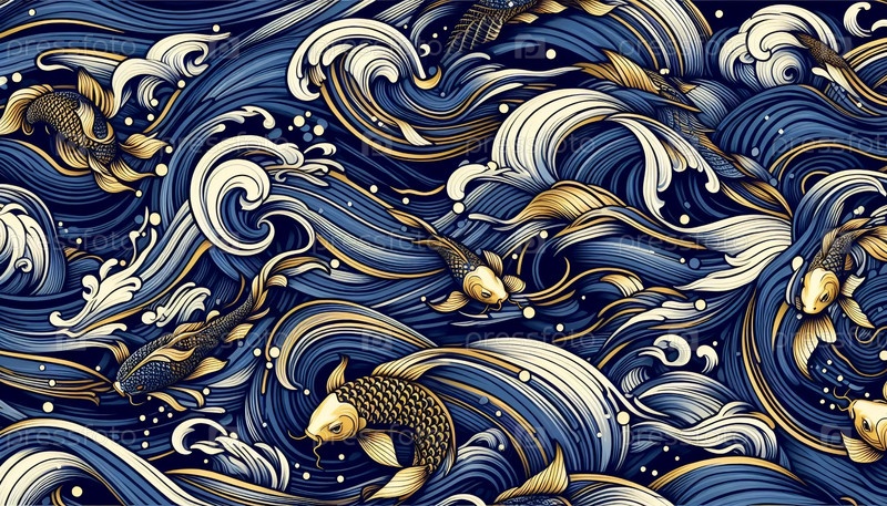 Японский дизайн обоев с повторяющимися узорами, Ai generated image