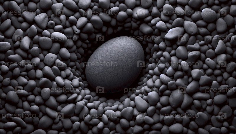 Совершенно гладкий овальный речной камень, помещенный на ложе грубого неровного гравия того же цвета, Ai создал изображение