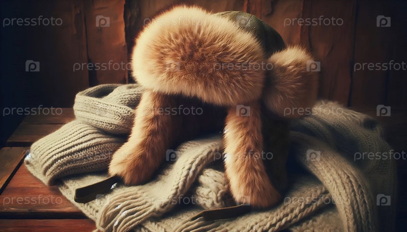 Советская зимняя шляпа с ушными колпачками, Ai generated image
