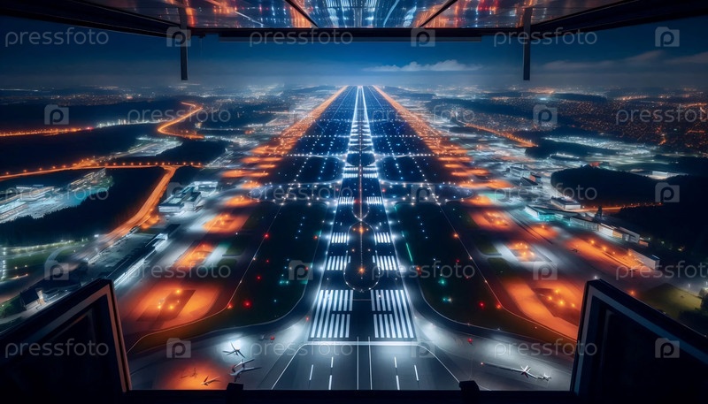 Вид с вышки управления воздушным движением ночью, Ai создал изображение