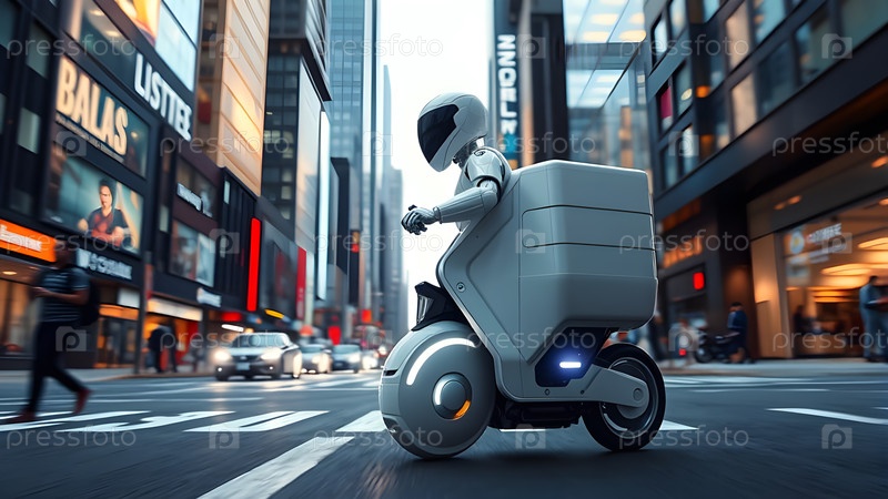 Автономный робот доставки, изображение создано с помощью Ai
