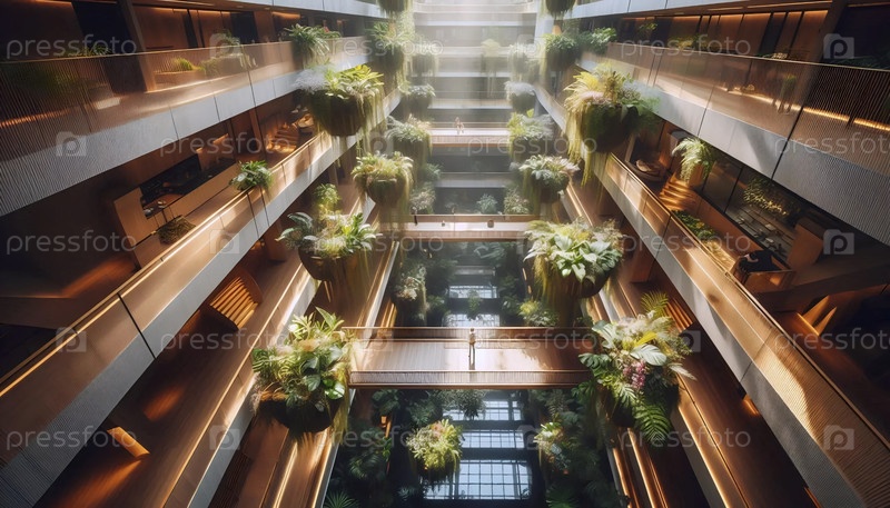 Стеклянный атриум с висящими садами, Ai generated image