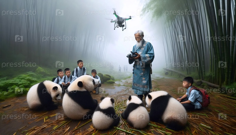 Знаменитые китайские хранители панды, ИИ сгенерированное изображение
