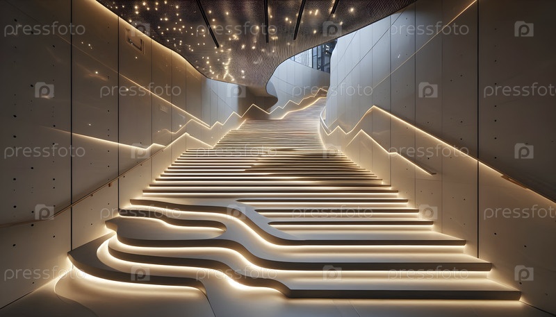 Лестница с адаптивным ступенчатым освещением, Ai created image A