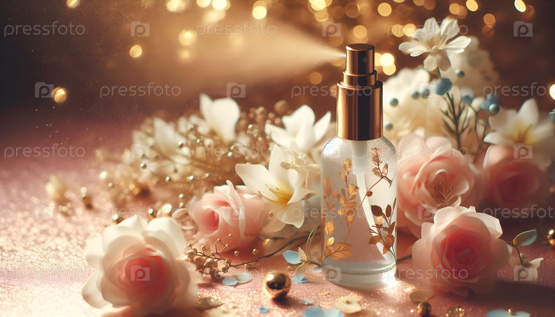 Бутылка тумана для лица, фон боке, изображение создано с помощью Ai