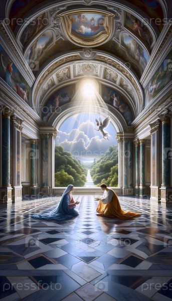 Благовещение в интерьере эпохи Возрождения, Ai generated image
