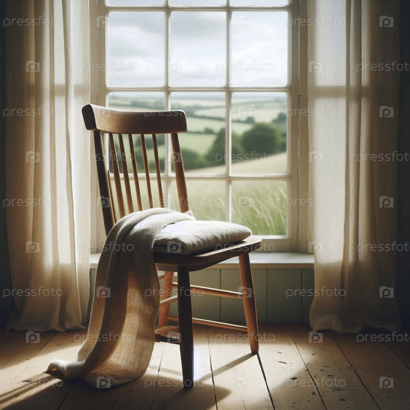 Одинокий пустой стул, обращенный к прекрасному виду, Ai generated image
