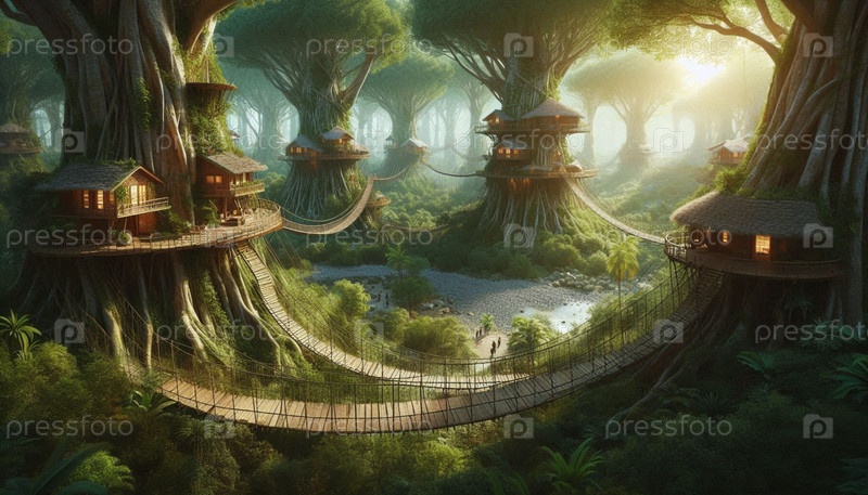 The Zero-Waste Sacred Treehouse Village, ИИ сгенерированное изображение