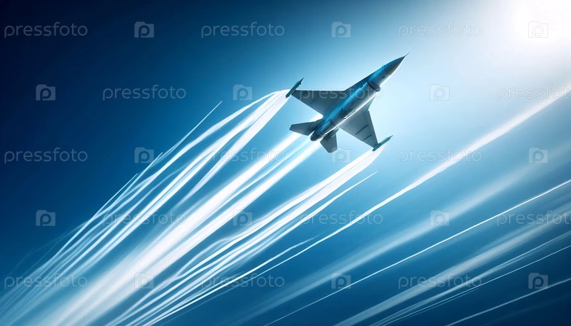 Истребитель F-16 в чистом небе, Ai generated image