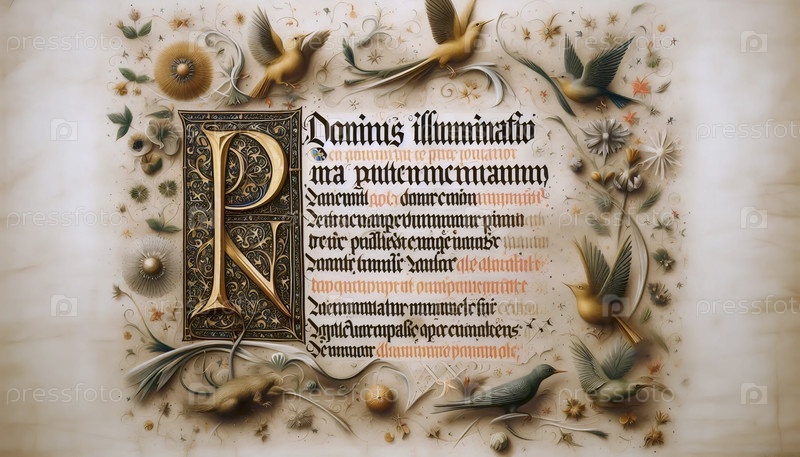 Фрагмент Псалма с иллюминацией из золотых листьев, Ai generated image