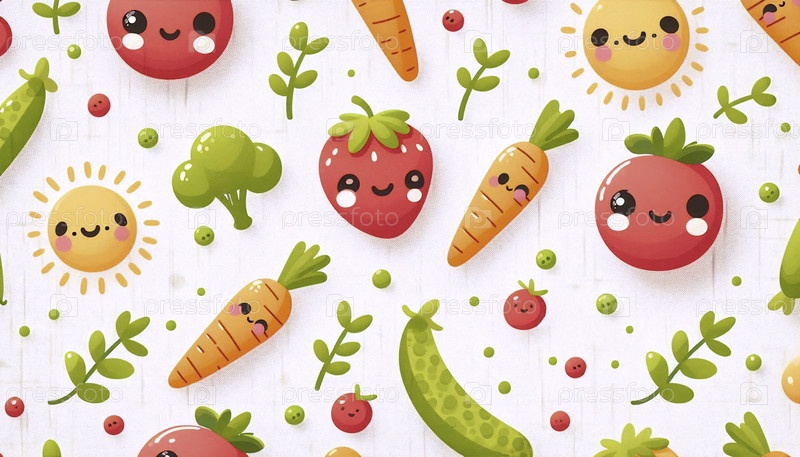 Образец садового сада фруктов и овощей kawaii для кухонного инвентаря, Ai generated image
