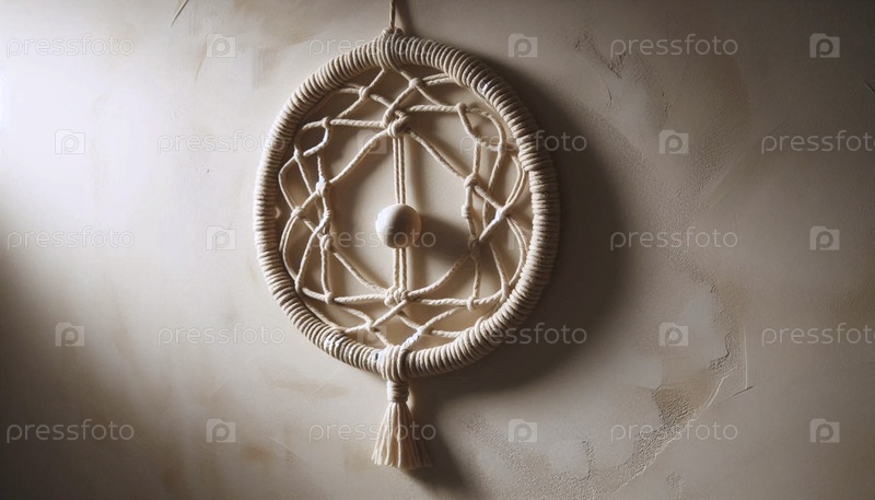 Круговая макрамовая стена, висящая с деревянным бисером, Ai generated image