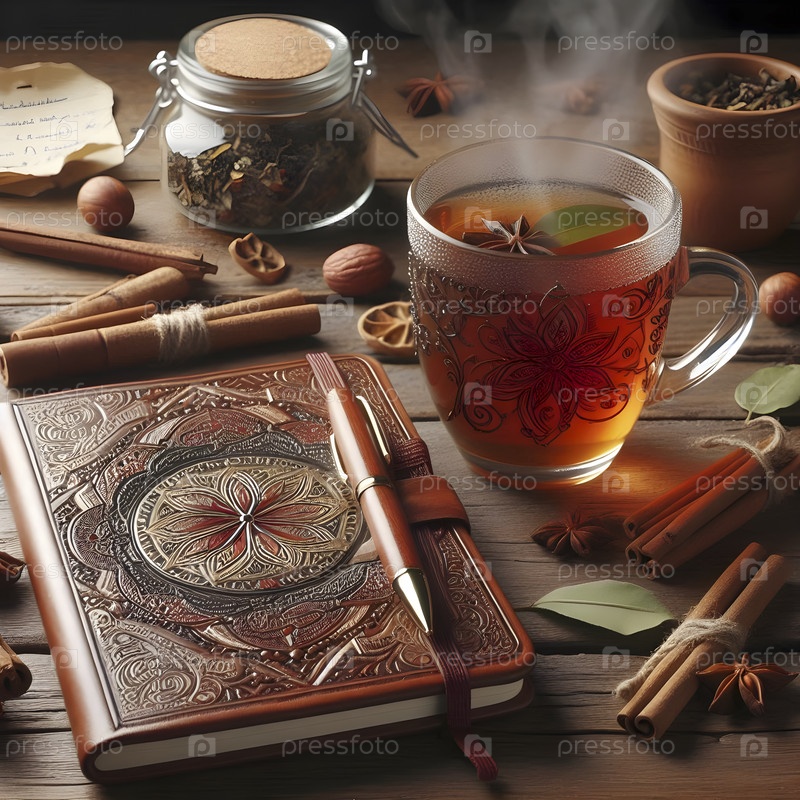Приготовление травяного чая в стеклянном стакане, Ai created image