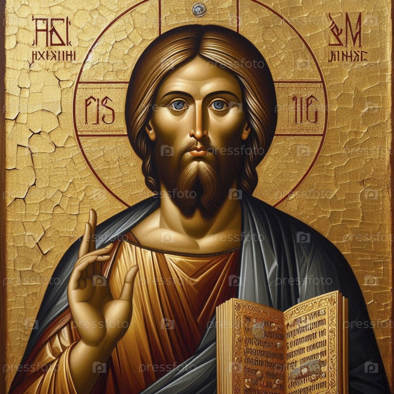 Цифровое воспроизведение традиционной восточно-православной иконы Христа Пантократора, Ai generated image