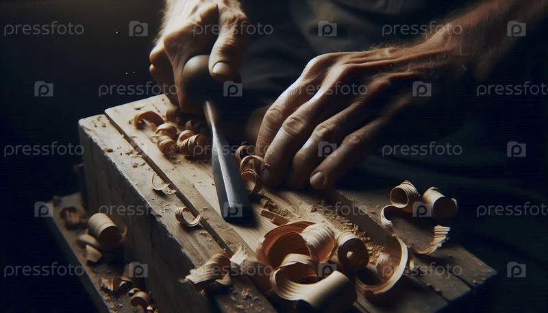 Выветрившиеся руки мастера-ремесленника, тонко режущие детали в куске темного дерева, Ai создали изображение