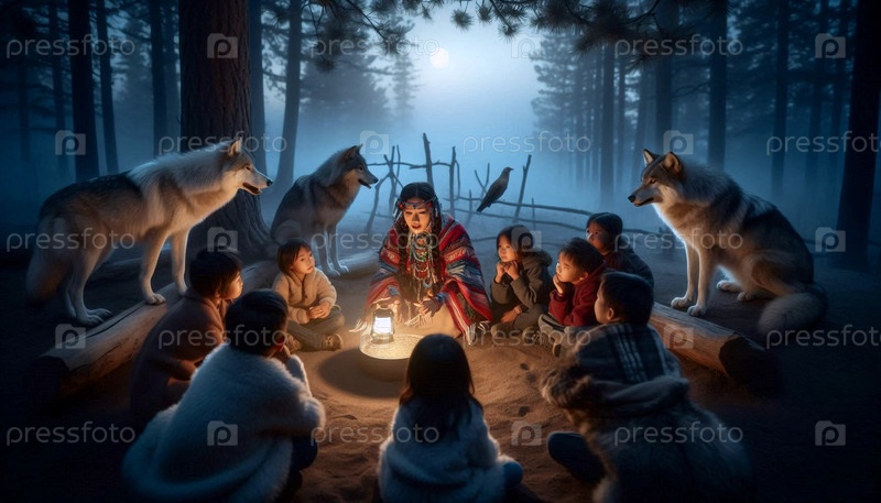 Культовый коренной американский волк The Guardian, AI generated image