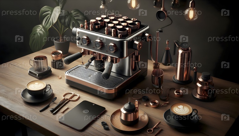 Модульная эспрессо-машина с магнитными заменяемыми головками, Ai created image