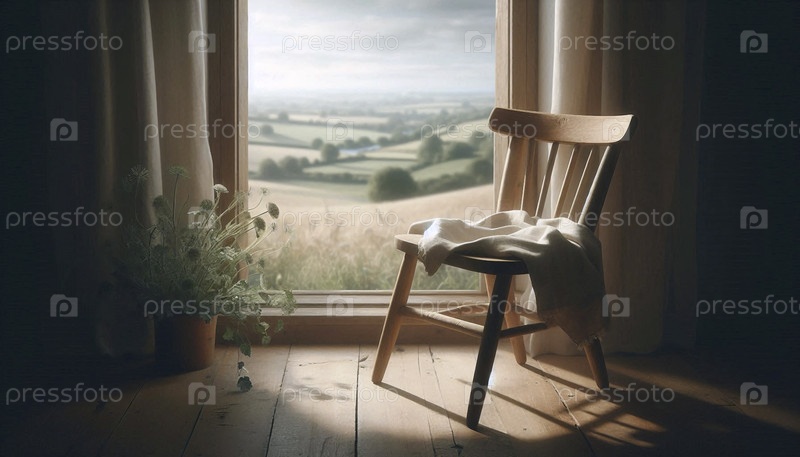 Одинокий пустой стул, обращенный к прекрасному виду, Ai generated image