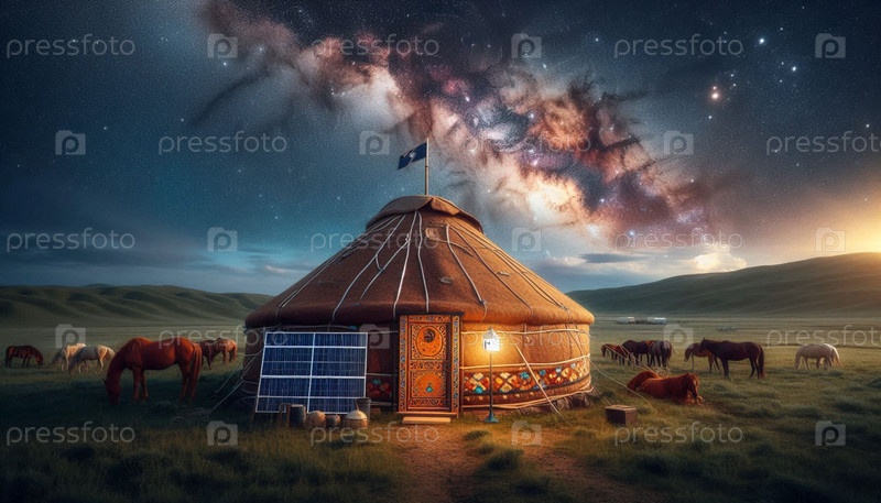 Монгольский гер-юрт, изображение создано искусственным интеллектом