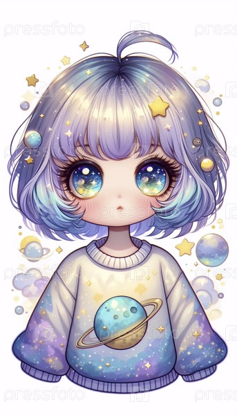 Подробная иллюстрация кавайской девочки со звездами в глазах, Ai generated image