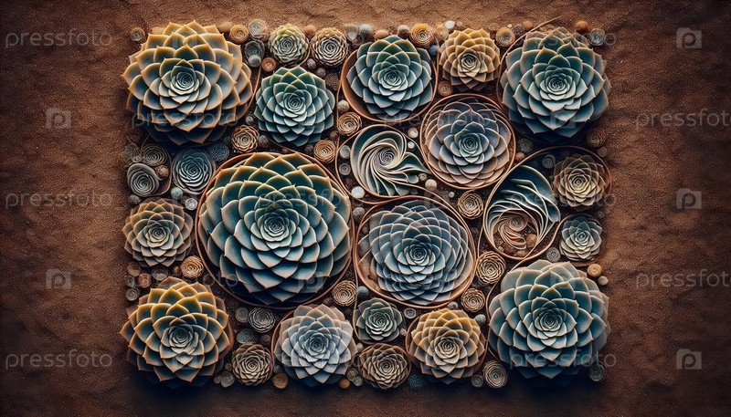 Суккуленты Фибоначчи лежат плоско, Ai generated image