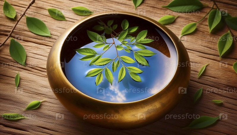 Отражение дерева в миске с неподвижной водой, Ai generated image