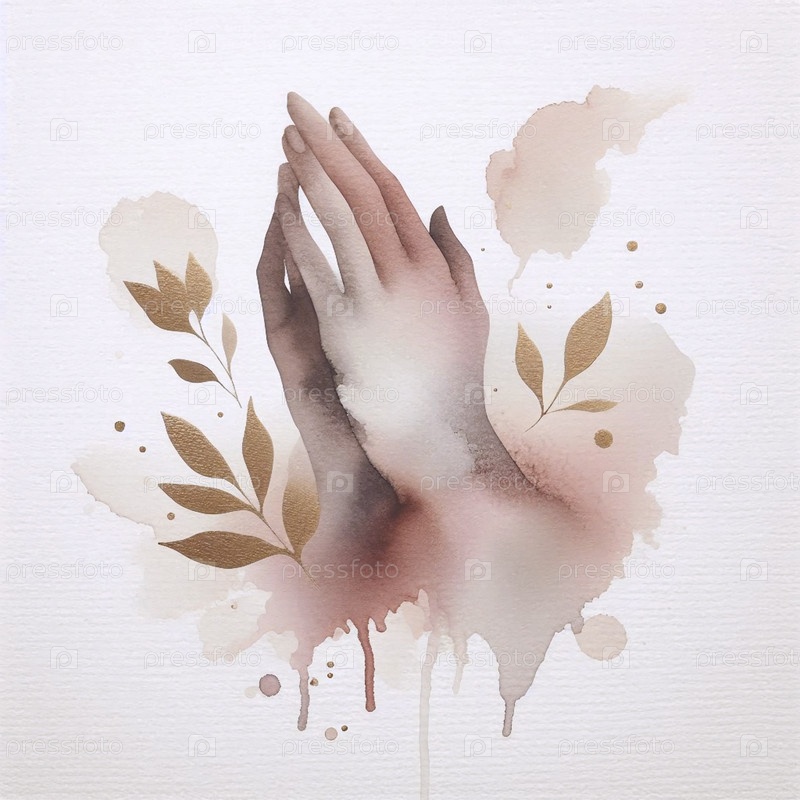 Силуэт двух открытых рук с цветами акварели, Ai generated image