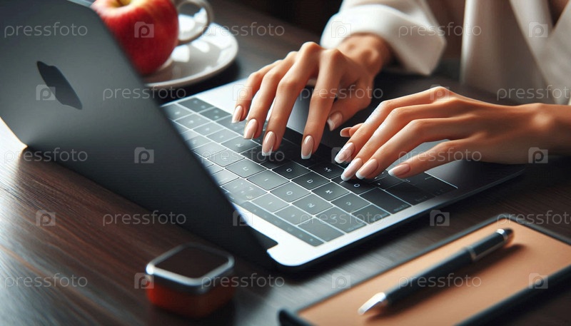 Руки, печатающие на клавиатуре в творческой атмосфере рабочего пространства, Ai generated image
