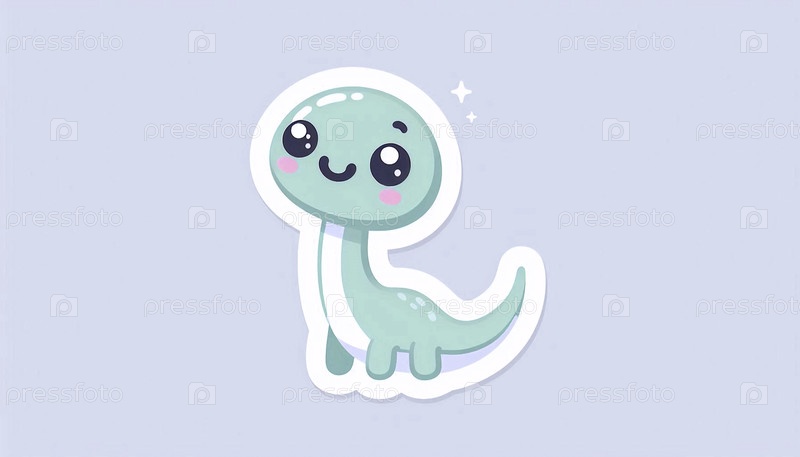 Милый стикер кавайи дружелюбного динозавра, Ai generated image