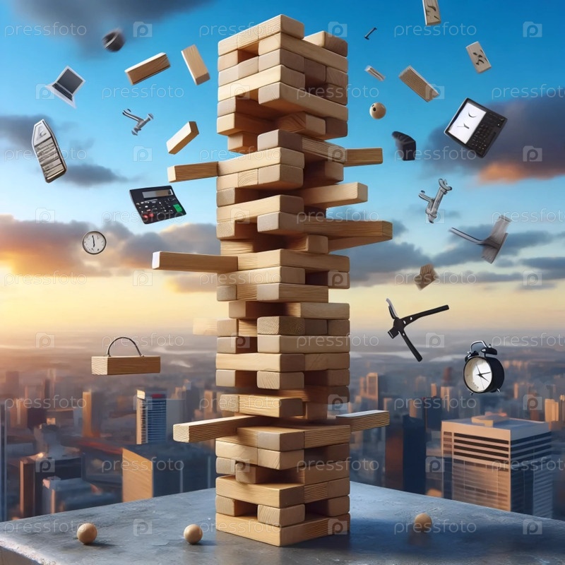 Наклонная башня из деревянных блоков, Ai generated image