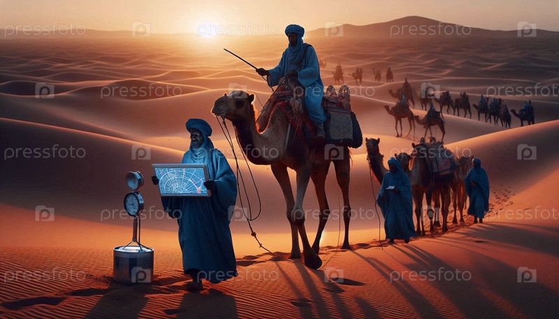 Солнечные караваны туарегов, созданное искусственным интеллектом изображение