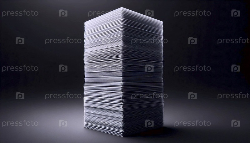 Куча идеально выравниваемых ультратонких визитных карточек на краю, показывающих точное слоивание бумаги, Ai создала изображение